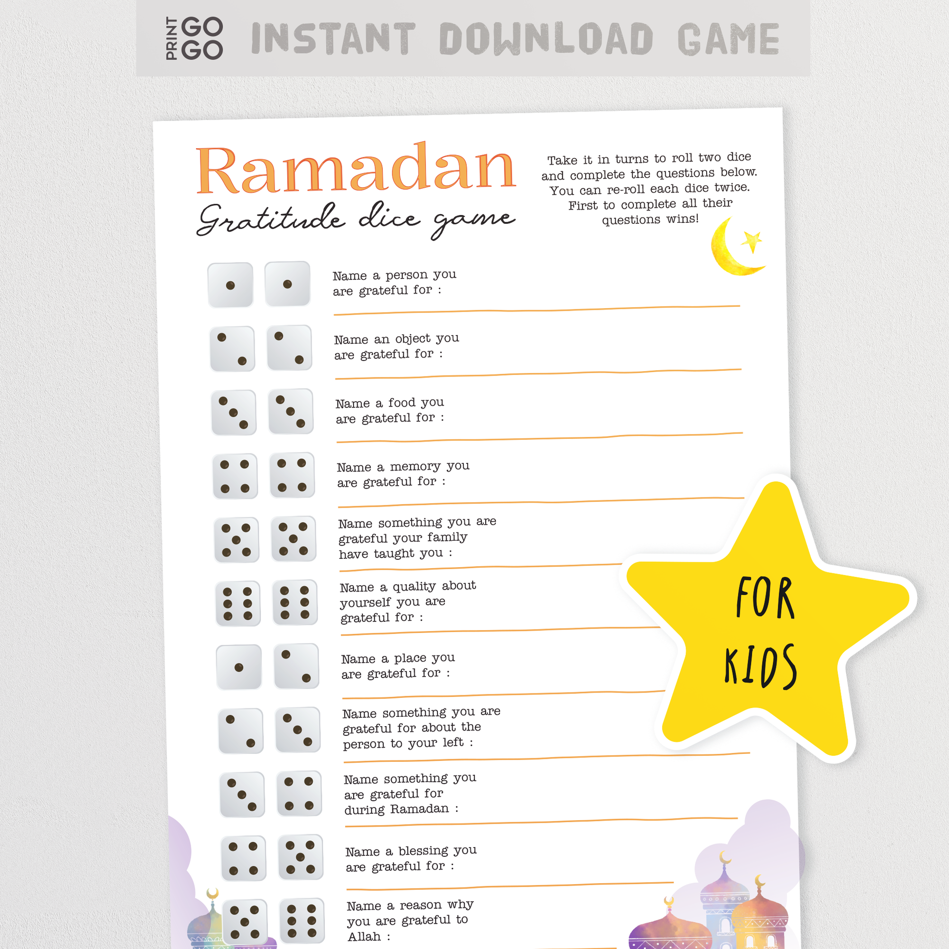 Ramadan Gratitude Dice Game - Roll, Reflect and Give Thanks